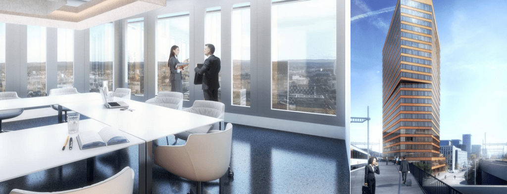 The Andreas Tower is a project of SBB-Immobilien [the real estate branch of the Swiss railway conglomerate]. SBB-Immobilien operates under a mandate to generate profit—it accomplishes this, however, on city land and with the help of the city in removing regulatory hurdles to new construction. For this it has been criticized even in the architectural journal Hochparterre: SBB is a state operation that, in the case of the Andreas Tower as well as many others, profits off the public but gives nothing in return (e.g. by including public, low-income, or community housing in its development plans). Besides its 20,000 square meters of office space, the SBB’s Andreas Tower will otherwise provide units only for retail and food service.