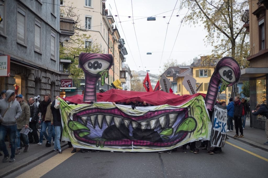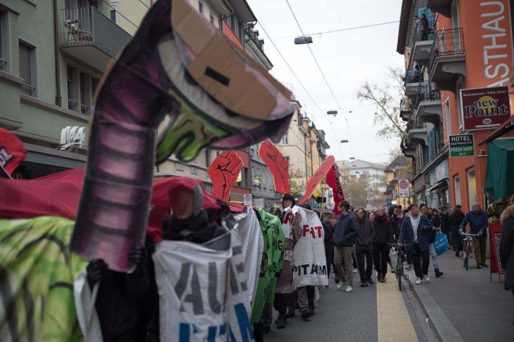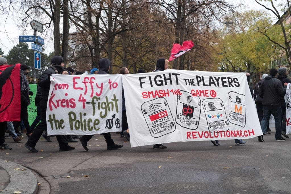 Here’s a selection of the photos ajour posted from this fall’s anti-gentrification demo in Zurich mentioned in this article (18 November 2017):