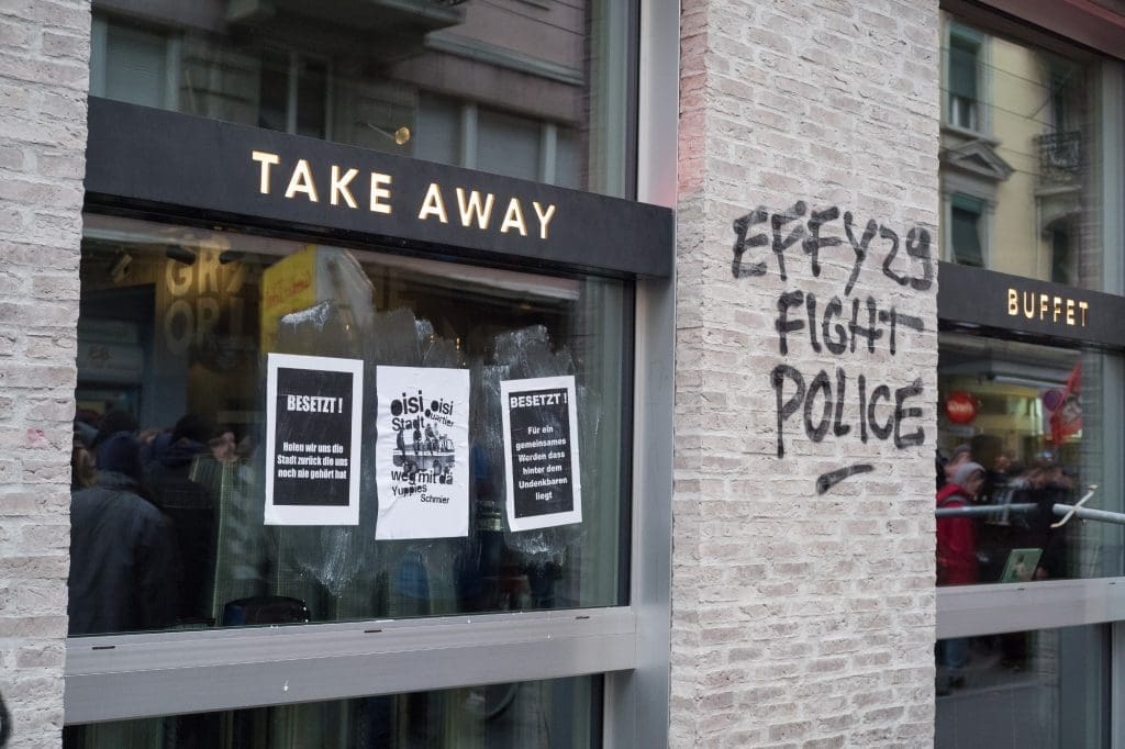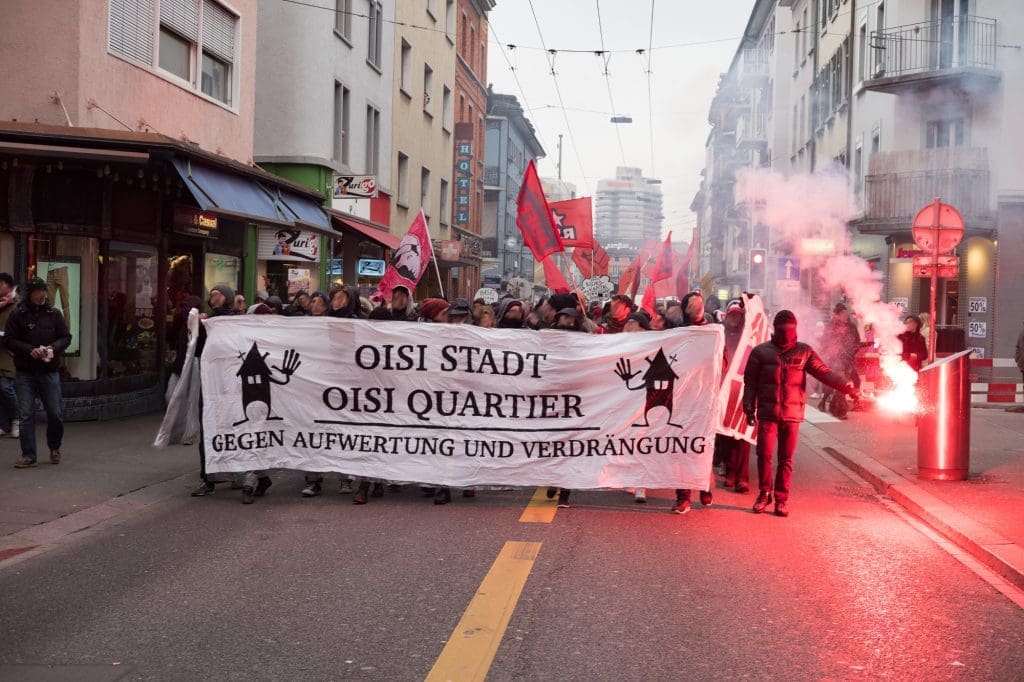 Gentrification is a broadly-discussed issue in Zurich, and many different groups are grappling with it—among them those being compelled by outside forces to do so. Bourgeois media such as the Tagesanzeiger or the NZZ report on it fairly regularly, even if the latter mostly does so in the form of refutations. A not totally disparaging article in advance of the Zurich demonstration even appeared in the free daily commuter rag 20 Minuten.