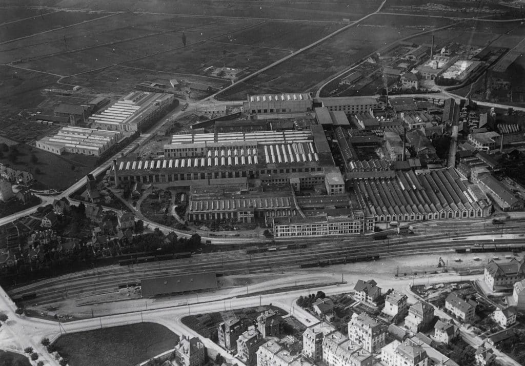 But let’s go back even further: Oerlikon developed rapidly during the twentieth century, transforming from a small town into a central hub on Zurich’s north side in a relatively short time. In its small-town days of the mid-nineteenth century, Oerlikon was already caught in the throes of industrialization. Rail lines and a small train station were constructed, and north of them an industrial zone began to form. This started with the Maschinenfabrik Oerlikon (MFO), which later became Oerlikon Bührle, a factory which among other things produced arms for Nazi Germany. This industrial development drew workers to Oerlikon, and the community on the city side of the tracks began to urbanize. From then on Oerlikon experienced a steep ascendance.