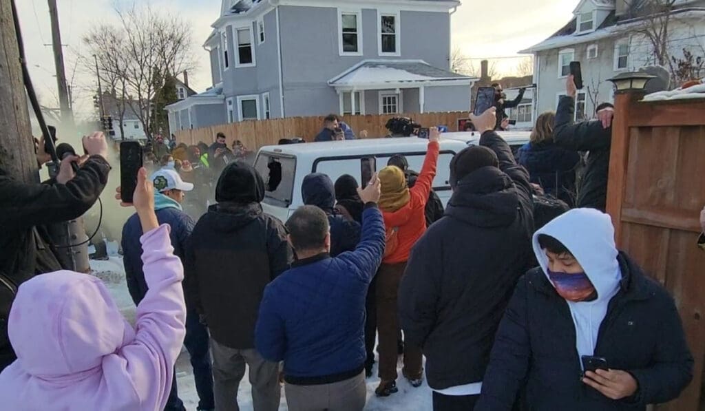 Featured image: a crowd of neighbors chases ICE and other federal paramilitaries off the block after one of them shot and killed Renee Good in cold blood.